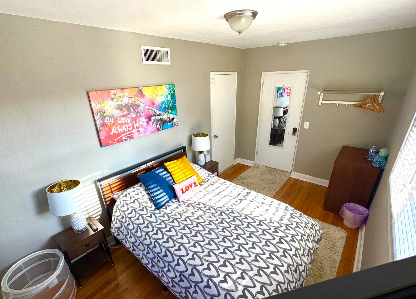 Getting into the house, use your four digit code to enter the front door (last four digits of your phone number as listed in your Airbnb account). Please wait patiently for the lock to finish its cycle, then open the door. Your room also contains a digital key pad. Please follow these instructions to enter your room. 1. Press the lower left check mark button to illuminate the keypad. 2. Enter your four digit code 3. Press the lower left check mark button again to submit your code for approval. During your stay you’ll have full access to the kitchen, bathroom, living room, computer and computer desk, printer, gas grill, deck/patio, and garage for doing laundry. The garage is not for guest vehicle storage. I provide a peaceful and welcoming space for all people. Please help me keep it that way.